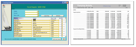 Create your own database, or use ours. The PRISTINE Database is simple to manage and report on vessel pumping activity. User codes created are sent out to PRISTINE field-based systems. Activity is retrieved and reported.